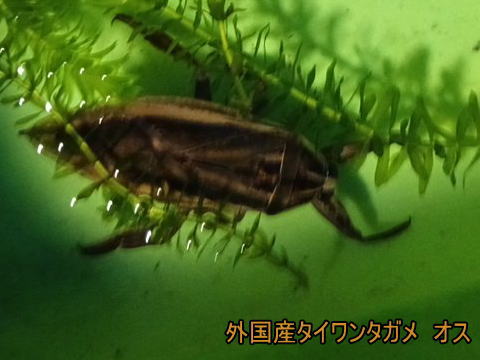 | タガメとは? タガメは、日本最大の水生昆虫、且つ、日本最大のカメムシです(臭くはありません)。そして、小魚、カエル、ザリガニ、昆虫など水中の小動物を捕食する肉食性の昆虫です。 タガメは、近年、農薬の普及や環境破壊によってその数を急激に減らし、自然界では生存数は極端に少なく、絶滅危惧II類(環境省レッドリスト)に分類されている程です。 このように自然界では、生存が非常に難しいですが、人の飼育下であれば、環境管理ができるため飼育はさほど難しくはありません。 通常、単年ではなく2,3年生きます、なかなか手に入らない珍しい昆虫です。 国産タガメは2020年2月10日以降は絶滅のおそれのある野生動植物の種の保存に関する法律(種の保存法)に基づき特定第二種国内希少野生動植物種に指定され、販売目的の捕獲・売買が禁止されています タイワンタガメ 入荷しました |